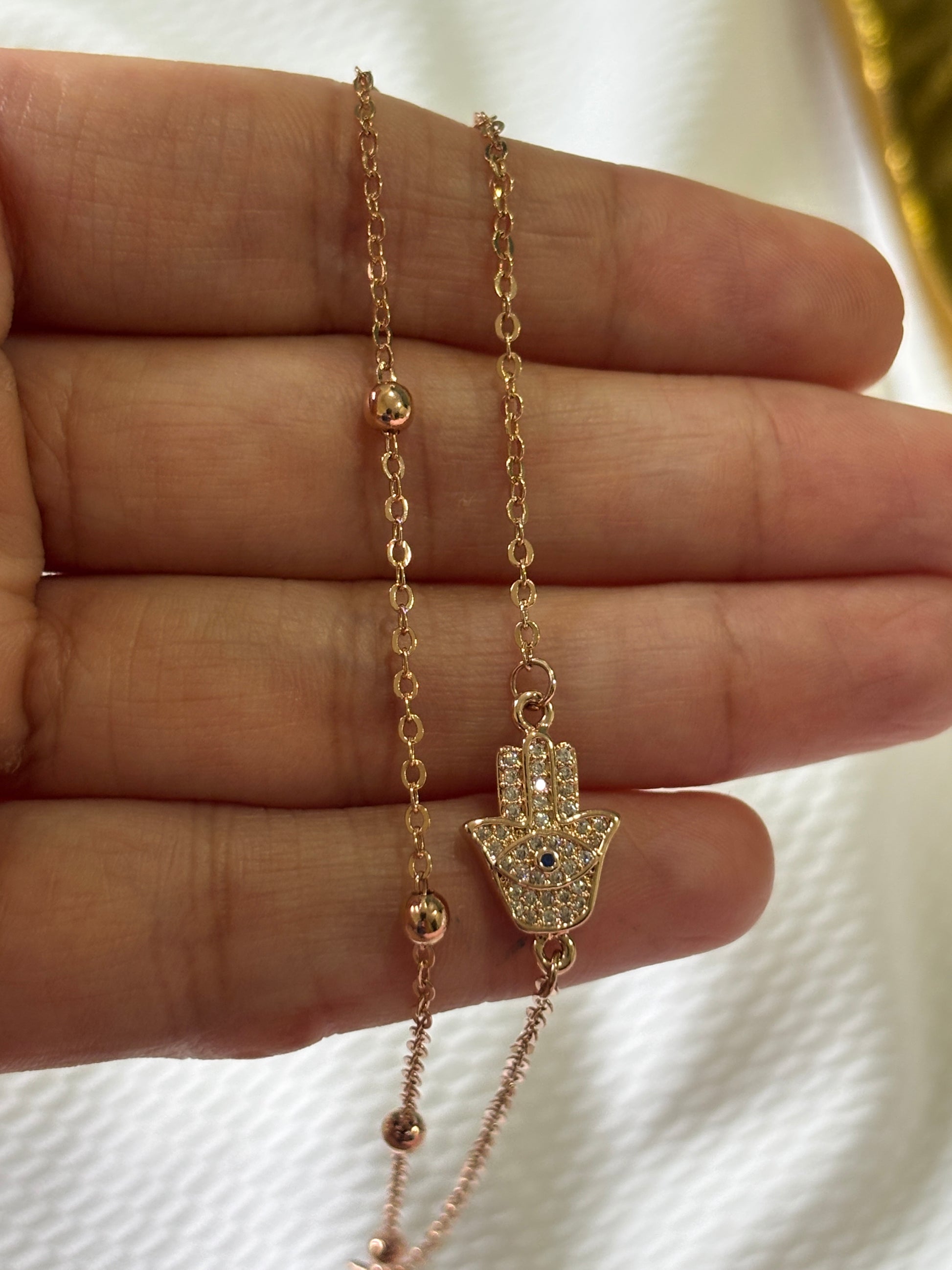 Indulge in the elegant simplicity of the Hamza Rose Gold Bracelet. This luxurious bracelet exudes sophistication and exclusivity, adding an artful touch to any outfit. Handcrafted with precision, it is the perfect statement piece for any fashion-forward individual. Elevate your style with the exquisite Hamza Bracelet.